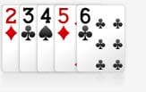 Kartu Straight (berurutan) : 5 kartu berurutan, contohnya 2 3 4 5 6 atau 10 J Q K As atau juga 5 6 7 8 9.